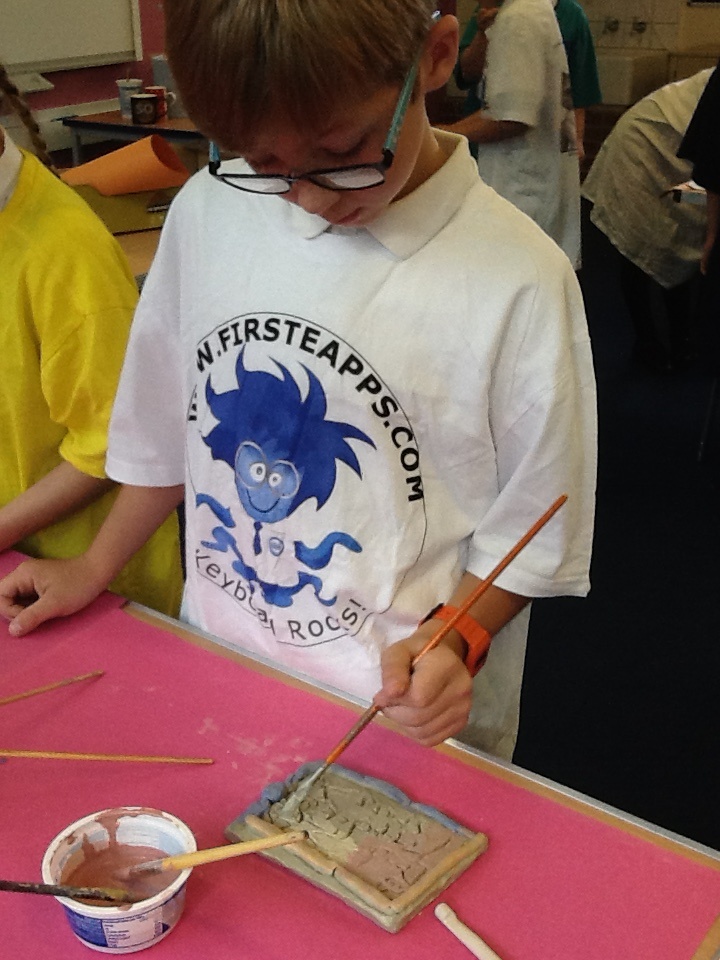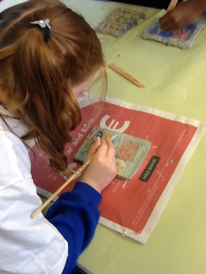 With our artist in residence we decorated the tiles we made for our whole school mosaic project.